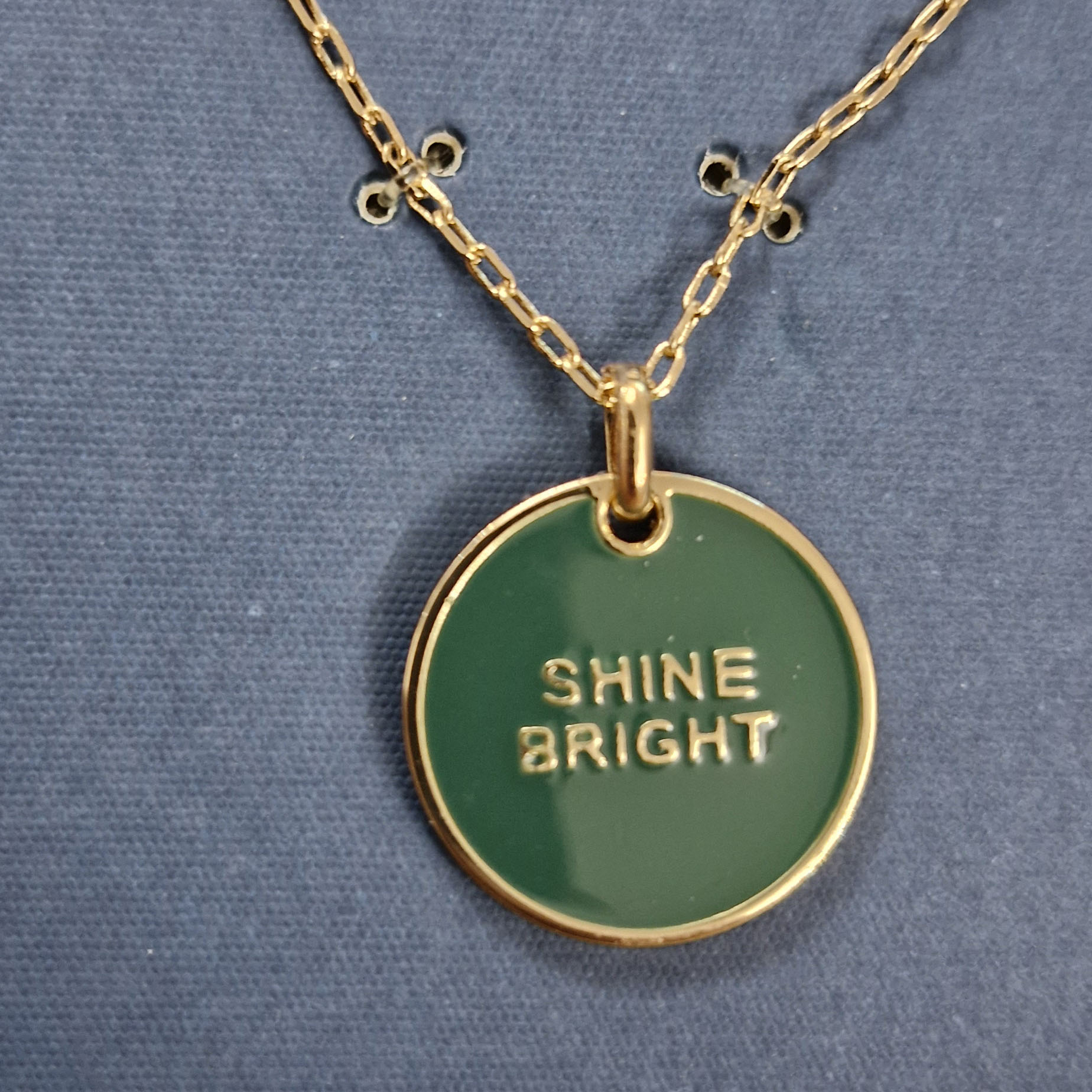 • پیام انگیزشی: روی پلاک، عبارت زیبای "SHINE BRIGHT" (بدرخش) حک شده که الهام‌بخش و مثبت است.