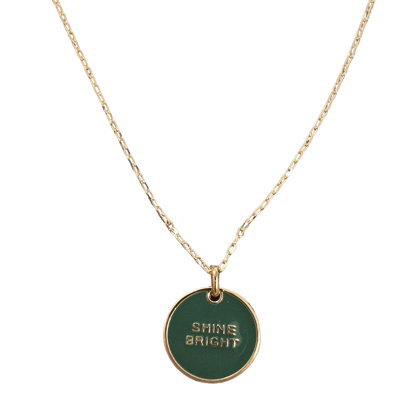 • طراحی شیک: زنجیر نازک با آبکاری طلایی (Gold-Tone) همراه با پلاک دایره‌ای با رنگ سبز عمیق که ظاهری ظریف و مدرن ایجاد می‌کند.