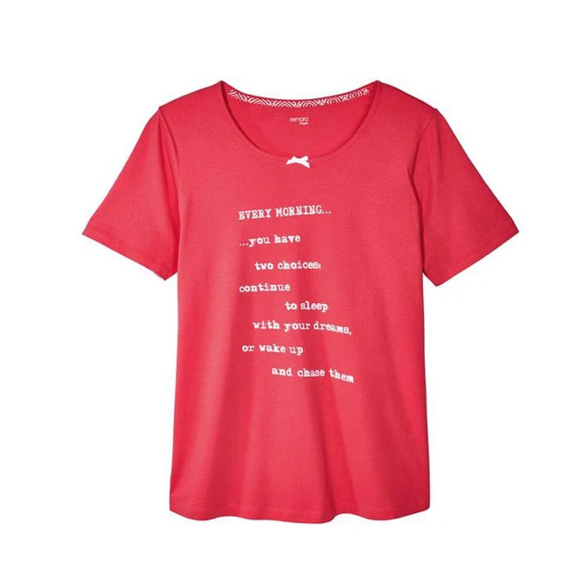 با تیشرت اسمارا، هر صبح خود را با یک انتخاب مثبت آغاز کنید. این تیشرت با پیام دلگرمکننده و پارچه راحت، انتخابی ایدهآل برای لباس خواب یا استایل کژوال روزانه شماست.