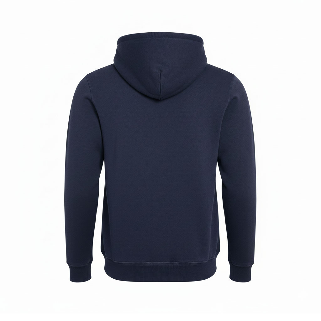 بند کلاه بافته شده: مجهز به بندهای تنظیم کلاه با طرح بافتنی آبی و سفید که علاوه بر کارایی، به زیبایی بصری سویشرت افزوده است.