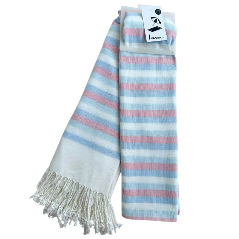حوله ساحلی آی ام (I Am)، با طرح راهراه جذاب و جنس کتان نخ با کیفیت، انتخابی ایدهآل برای روزهای آفتابی، ساحل، استخر و سفر است. این حوله نه تنها کاربردی است، بلکه به عنوان یک اکسسوری شیک در کنار دریا و یا استخر نیز عمل میکند.
