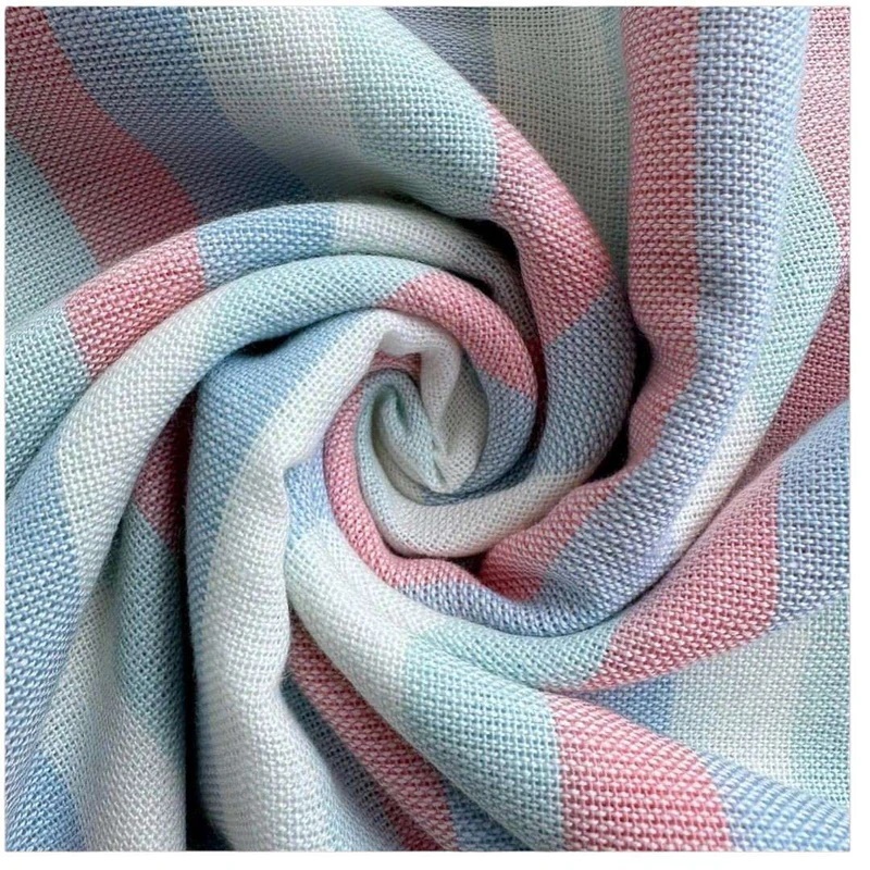 طراحی ترند: دارای طرح راهراه افقی به رنگهای پاستلی (احتمالاً صورتی روشن، آبی روشن و سفید) که ظاهری شاد، تابستانی و مد روز دارد.